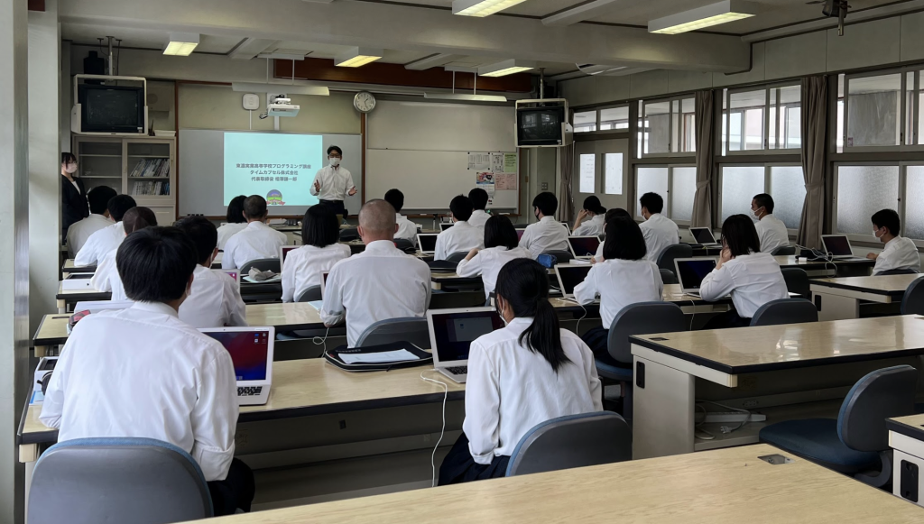 タイムカプセル株式会社(所在地:岐阜県岐阜市、代表:相澤謙一郎、以下タイムカプセル)は、東濃実業高校にてプログラミングスクールを行いました。